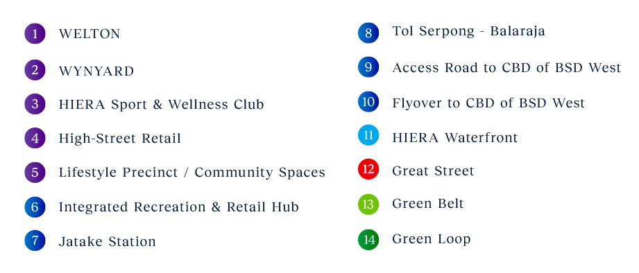 Menempati lahan seluas 108ha, Hiera menjadi kawasan baru berkembang yang sangat ideal untuk hunian karena Akses mudah ke BSD dan ke Tol Serpong – Balaraja.